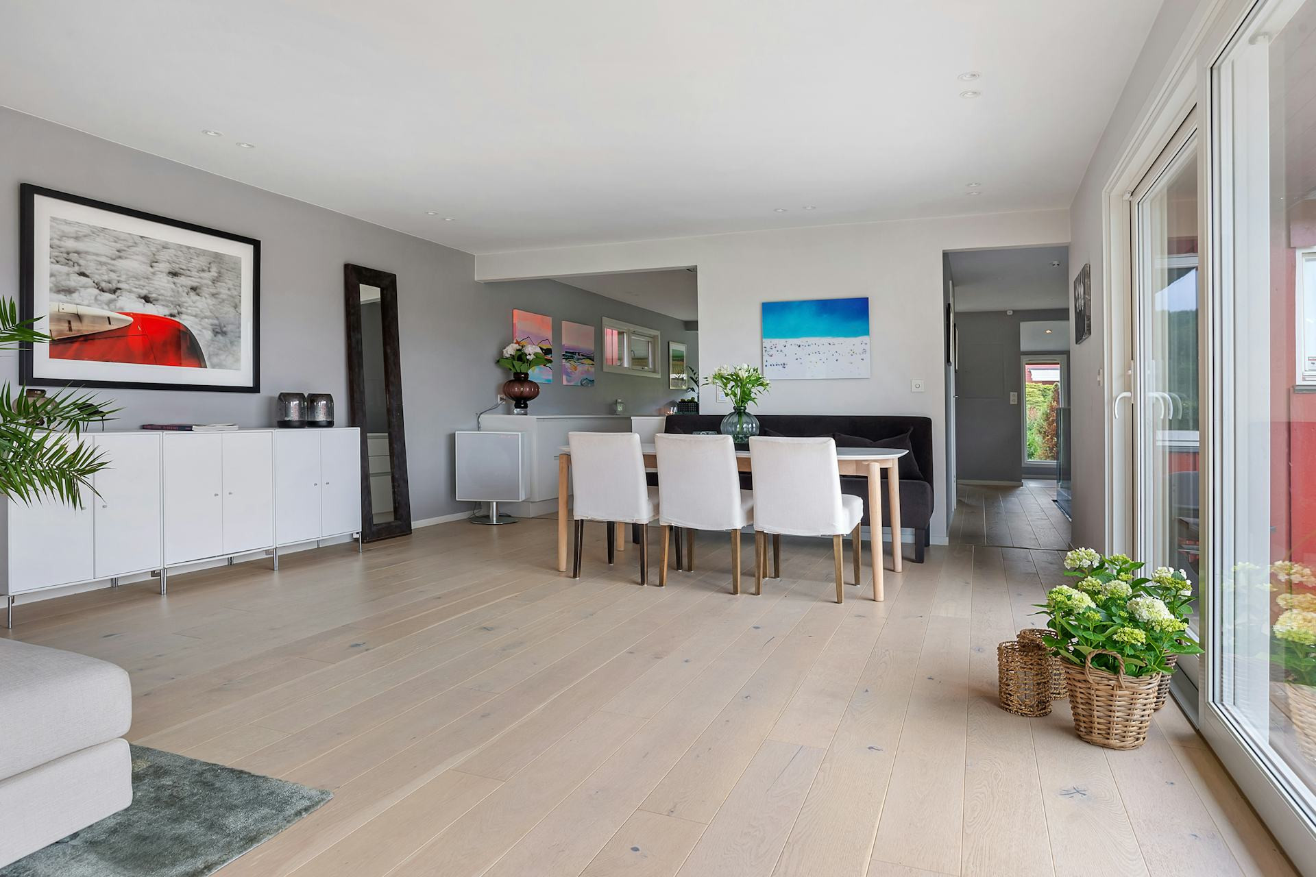 Farven på dit trægulv har stor betydning for, hvordan rummet opleves. Lyse gulve reflekterer mere lys og får rummet til at virke større og mere åbent. De passer godt til moderne, minimalistiske indretninger. Mørkere gulve giver derimod en følelse af ro og hygge – ideelt til store opholdsrum, hvor man ønsker en mere intim atmosfære.